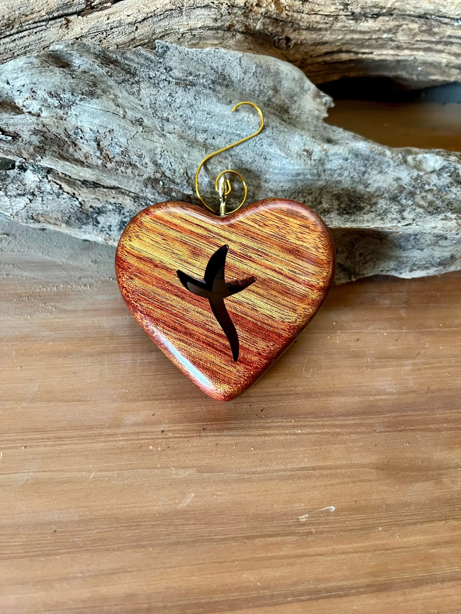 The Cross is scrolled out. The cross is sanded from 180 grit to 320. The finish is a natural blend of Waxes and Polymers that are hand applied and buffed to a smooth sheen through a 7 step process.
