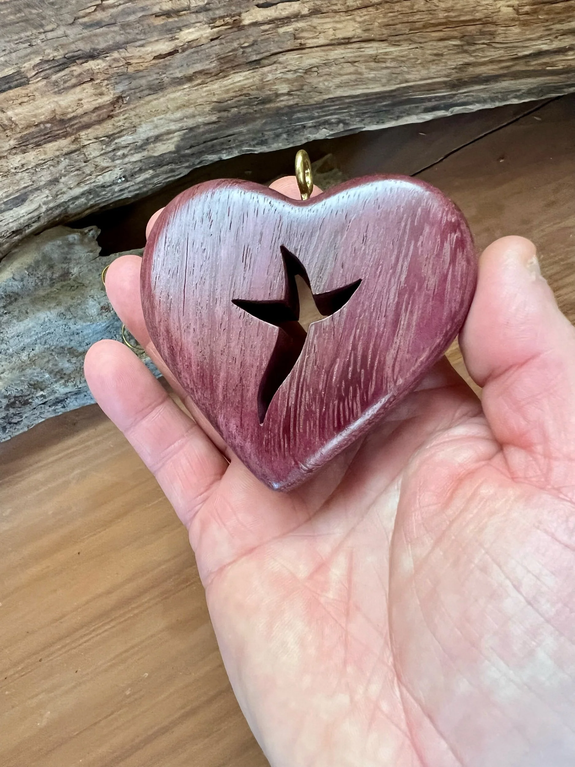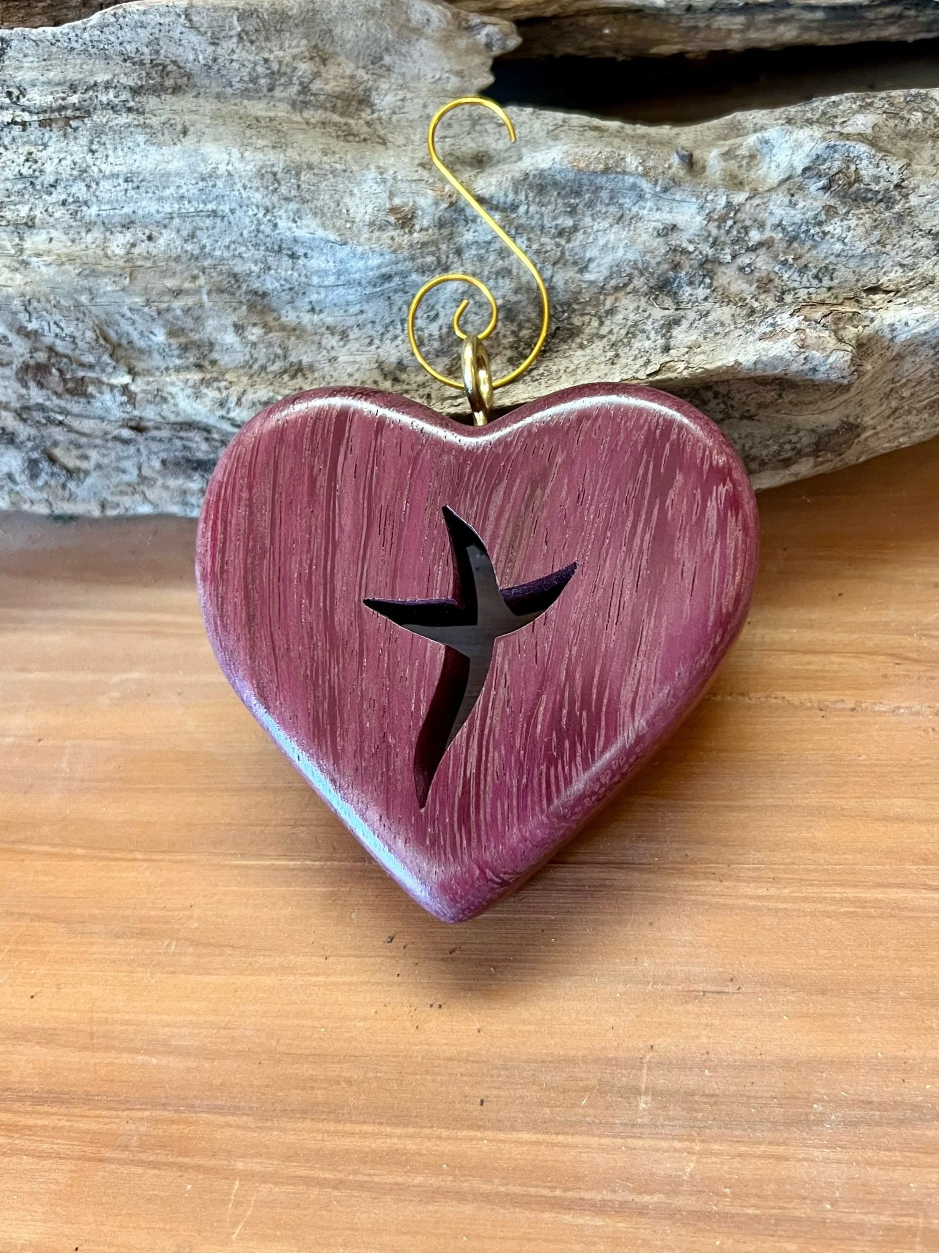 The Cross is scrolled out. The cross is sanded from 180 grit to 320. The finish is a natural blend of Waxes and Polymers that are hand applied and buffed to a smooth sheen through a 7 step process.