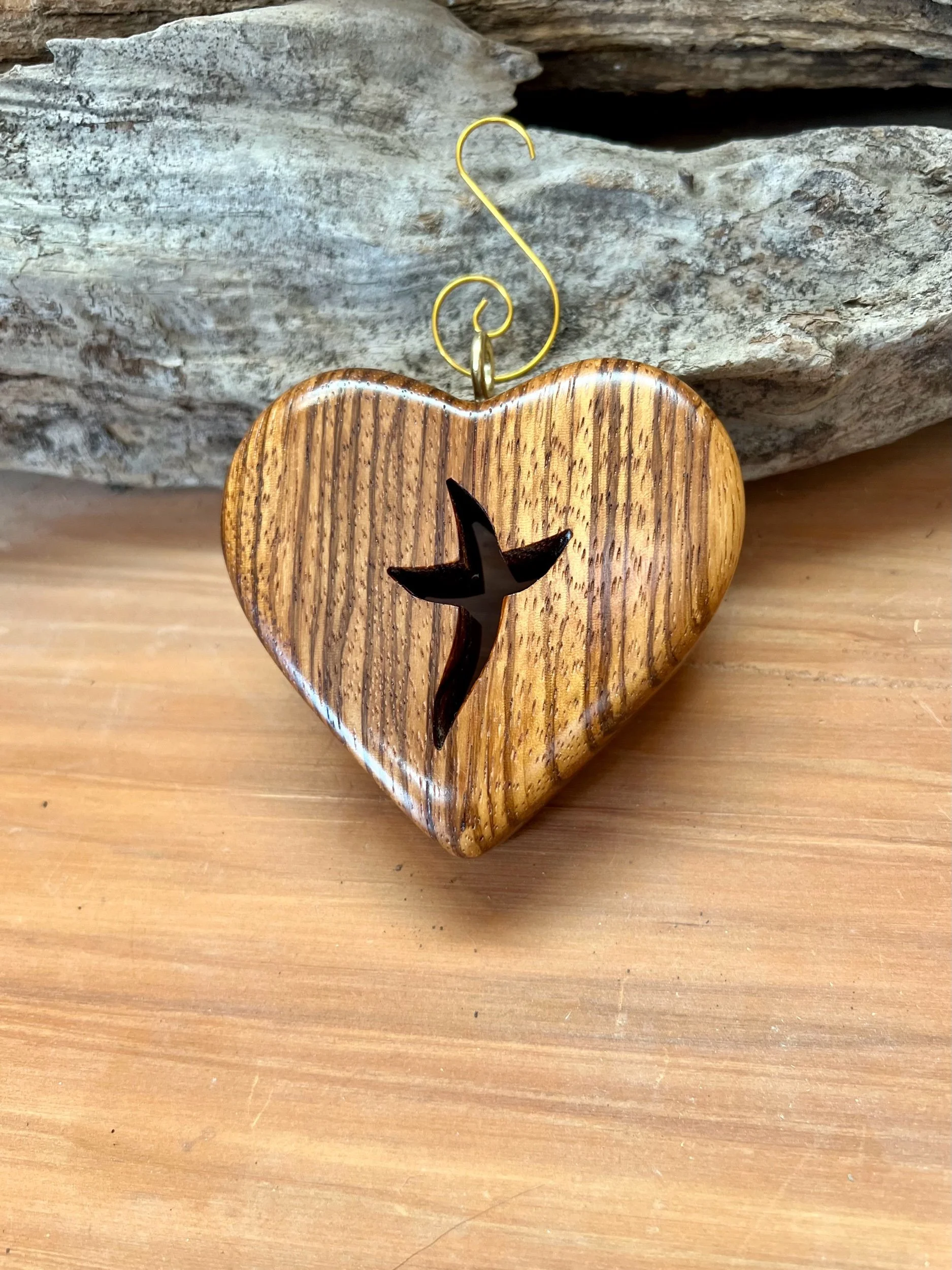 The Cross is scrolled out. The cross is sanded from 180 grit to 320. The finish is a natural blend of Waxes and Polymers that are hand applied and buffed to a smooth sheen through a 7 step process.