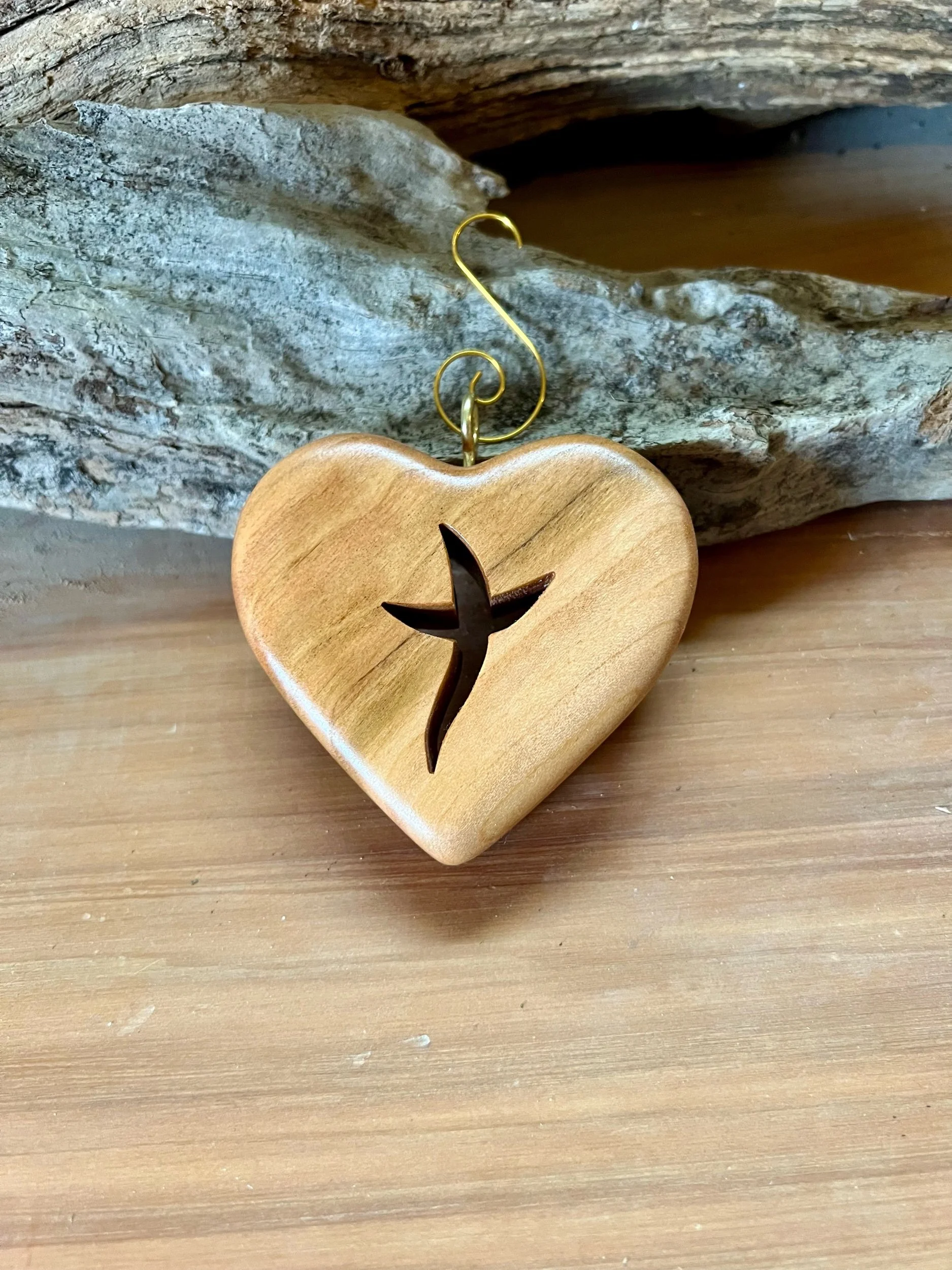 The Cross is scrolled out. The cross is sanded from 180 grit to 320. The finish is a natural blend of Waxes and Polymers that are hand applied and buffed to a smooth sheen through a 7 step process.