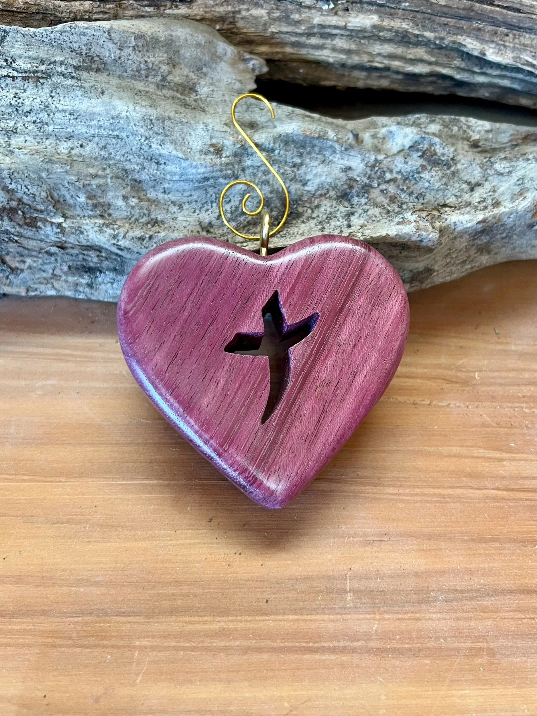 The Cross is scrolled out. The cross is sanded from 180 grit to 320. The finish is a natural blend of Waxes and Polymers that are hand applied and buffed to a smooth sheen through a 7 step process.
