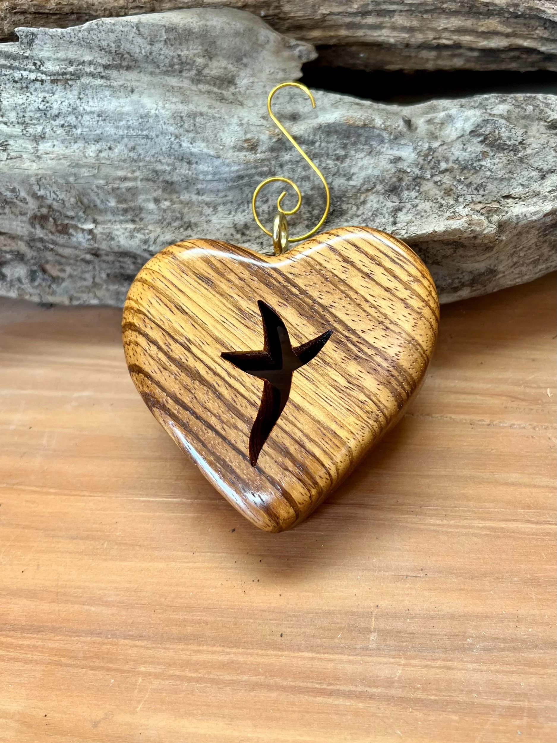 The Cross is scrolled out. The cross is sanded from 180 grit to 320. The finish is a natural blend of Waxes and Polymers that are hand applied and buffed to a smooth sheen through a 7 step process.