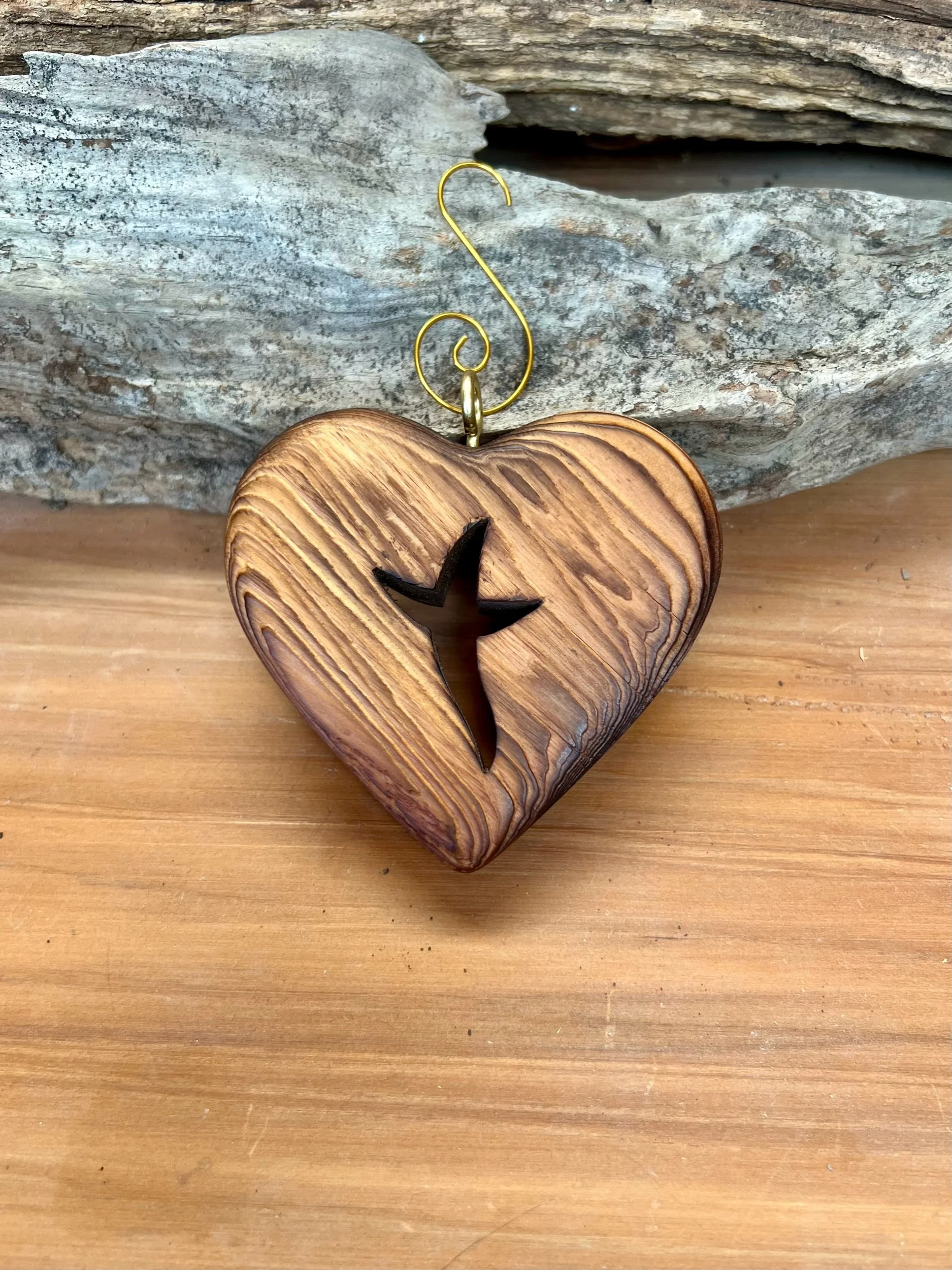 The Cross is scrolled out. The cross is sanded from 180 grit to 320. The finish is a natural blend of Waxes and Polymers that are hand applied and buffed to a smooth sheen through a 7 step process.